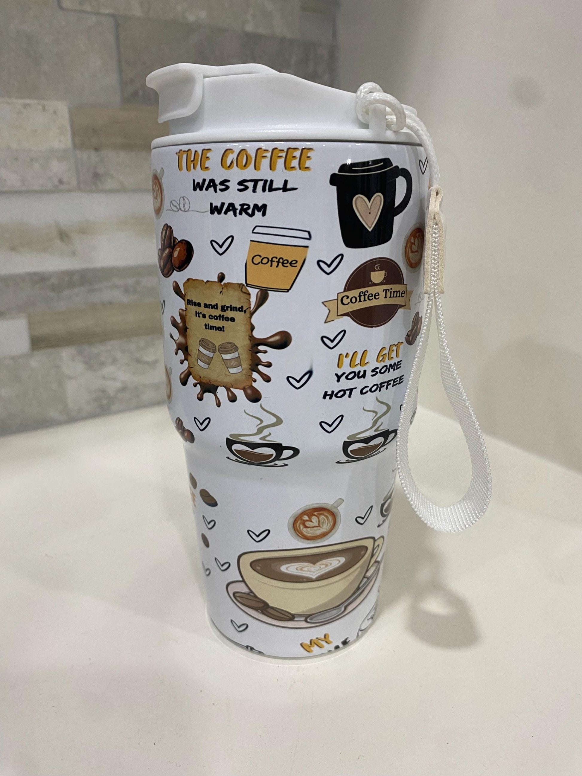 Personalized stainless steel tumbler with a high-quality, glossy finish that will never fade. Our tumbler makes it easy for traveling as it fits in most cup holders and keeps your drink hot or cold for many hours. The silicone lid is peg to enjoy a hot coffee. Details: - 20oz sublimation stainless steel - Double wall vacuum insulated - Includes a string to carry it FAQ: What is the processing time? - 1-2 business days - The portable sublimation 20 oz tumbler cups with a string on the lid are easy to carry around. And they fit perfectly in most car cup holders, making them a great travel companion. Notes: Returns are not accepted. Thank you for supporting our small businesses. Please feel free to message us if you have any questions or concerns.