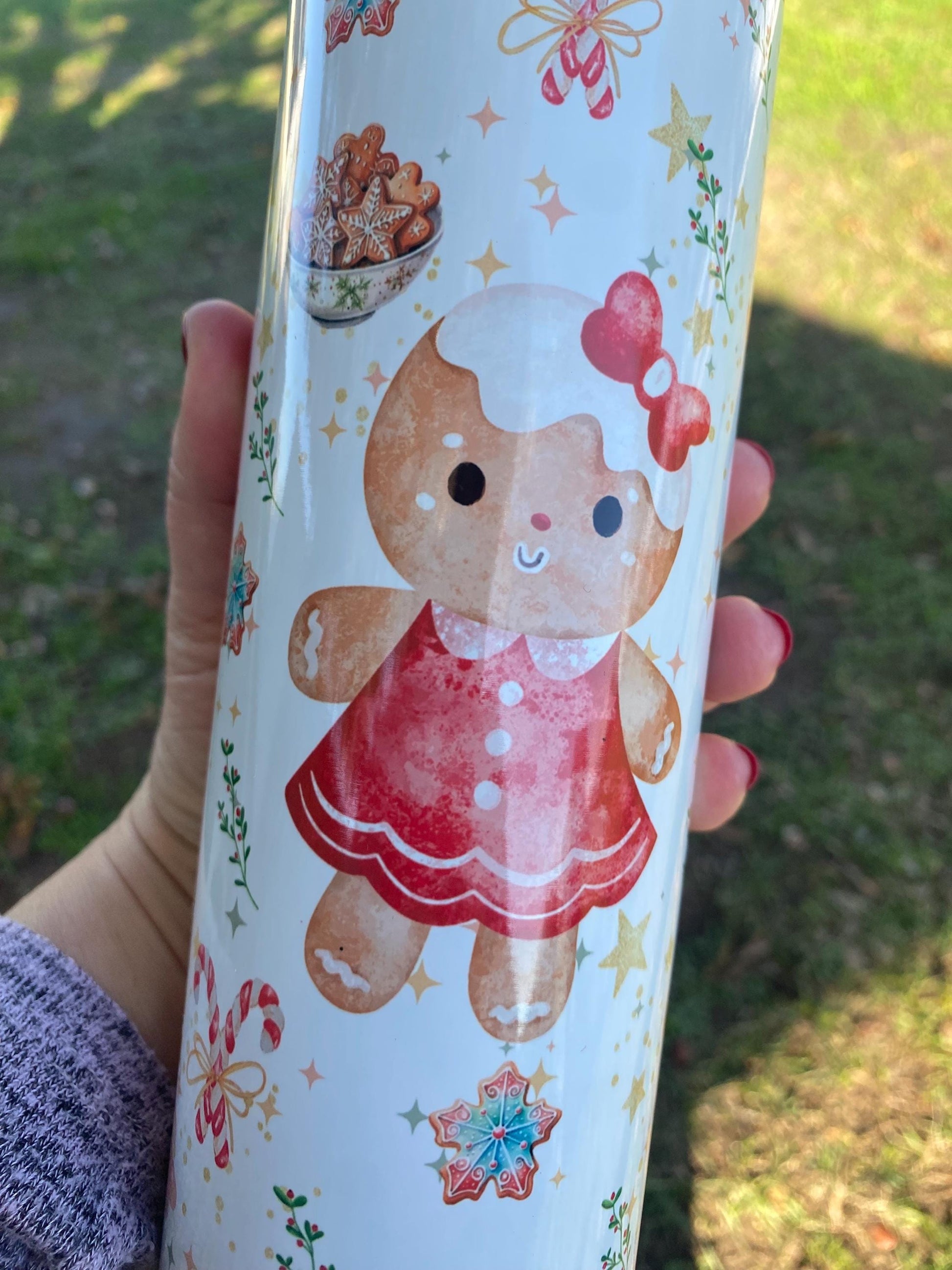 Christmas 20 oz water bottle. Gingerbread cookie tumbler and water bottle. Skinny tumbler and water bottle