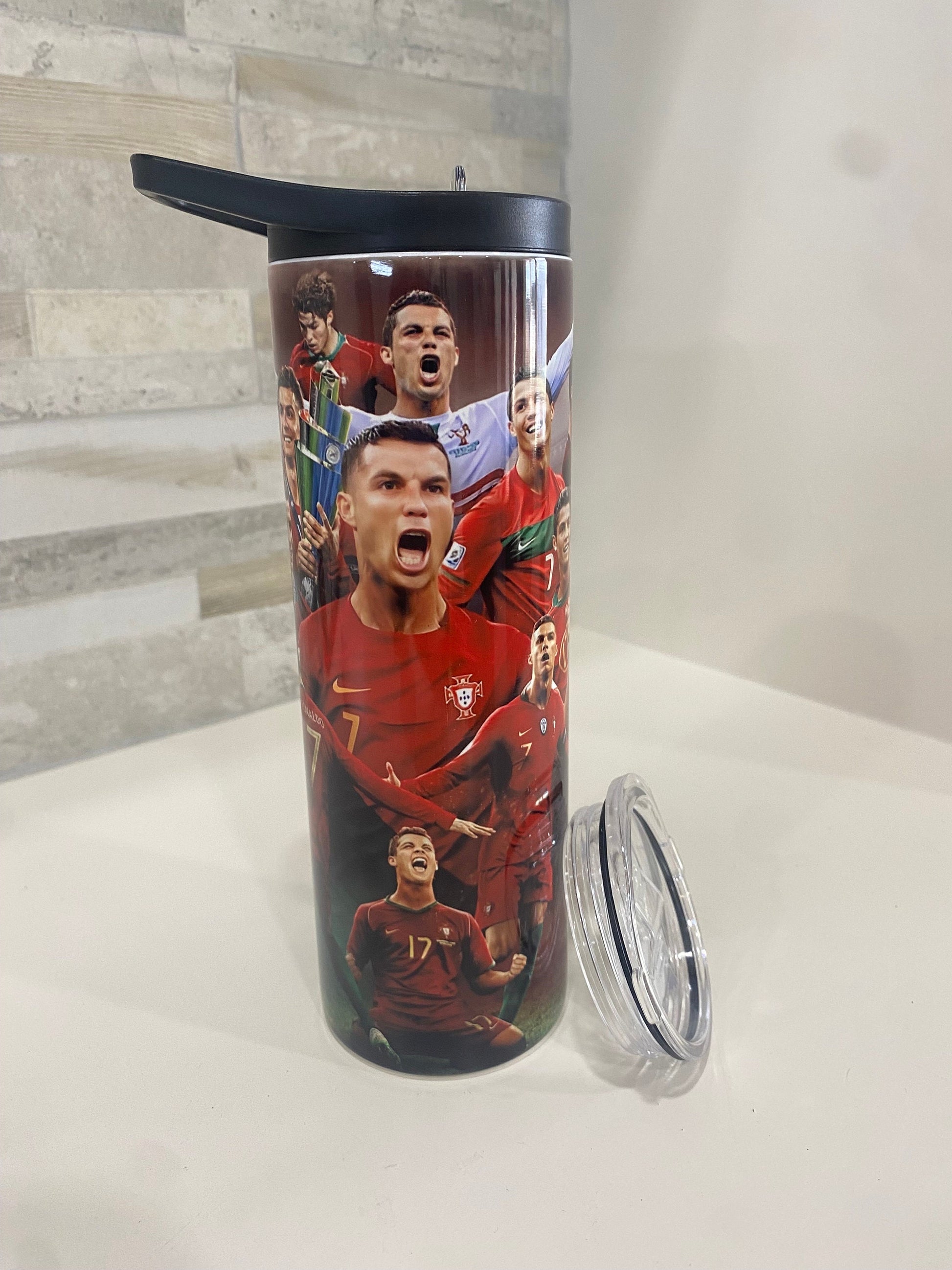 Cristiano Ronaldo personalized water bottle and tumbler. 20 oz personalized tumbler. Soccer team. Portugal football. Team personalized cup.