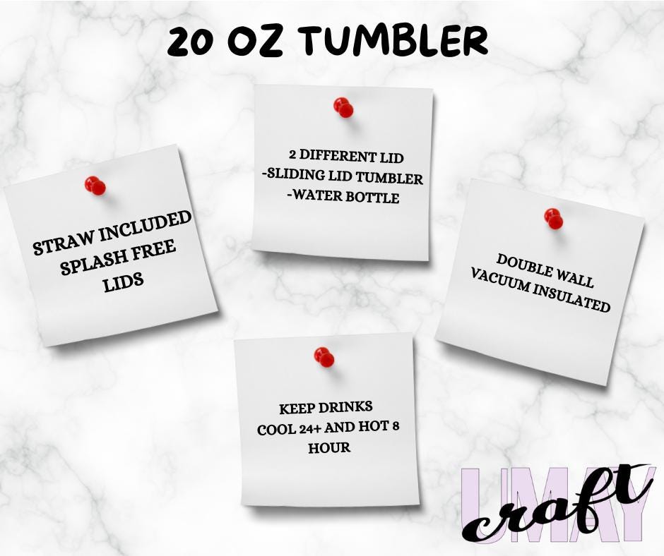 Personalized stainless steel tumbler with a high-quality, glossy finish that will never fade. Our tumbler makes it easy to travel as it fits in most cup holders and keeps your drink hot or cold for many hours. The lid would be changed to a water bottle or a tumbler as you want.