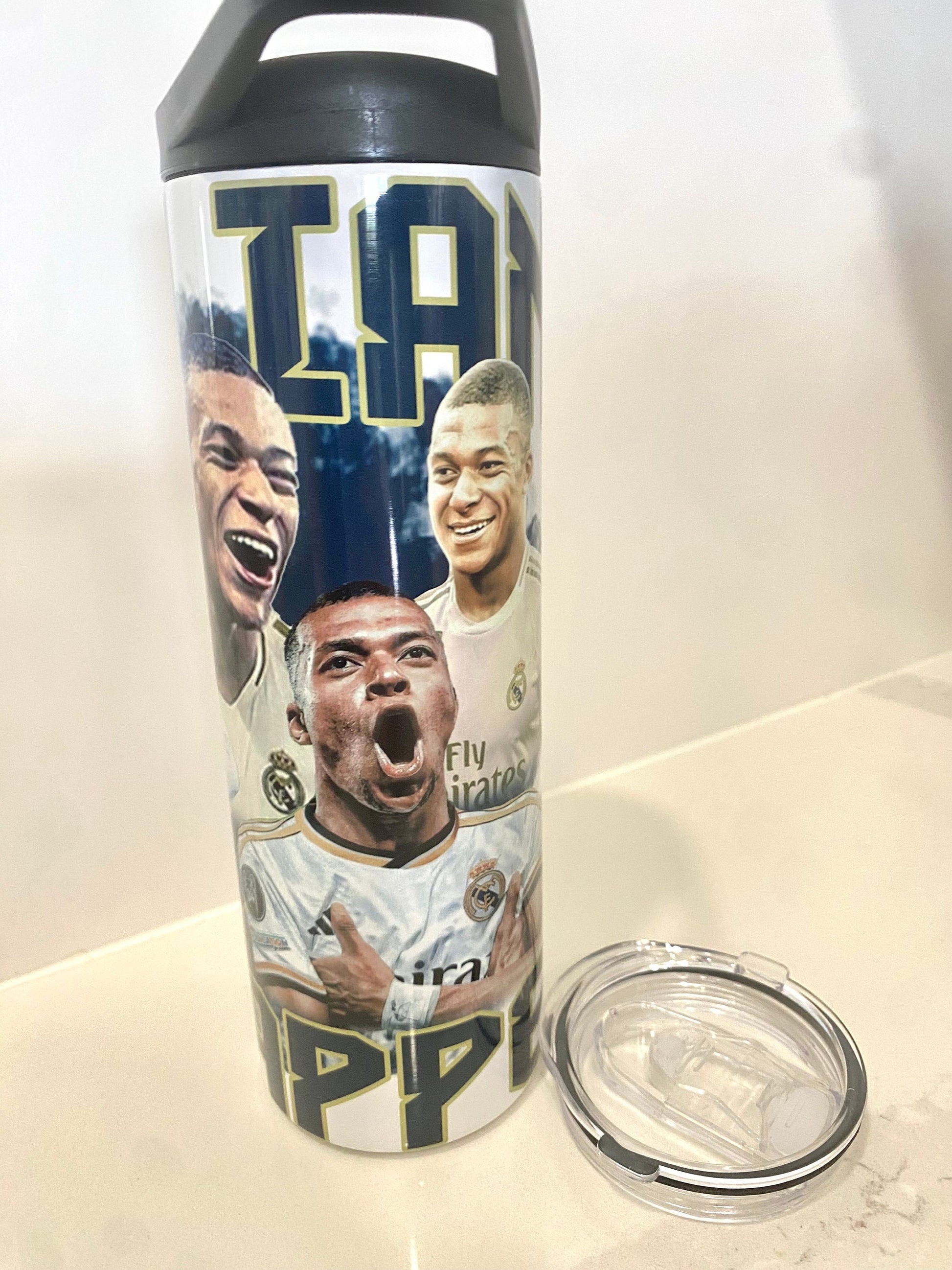Mbappe tumbler and water bottles. Soccer water bottle. Real Madrid water bottle. 20 oz tumbler. soccer team