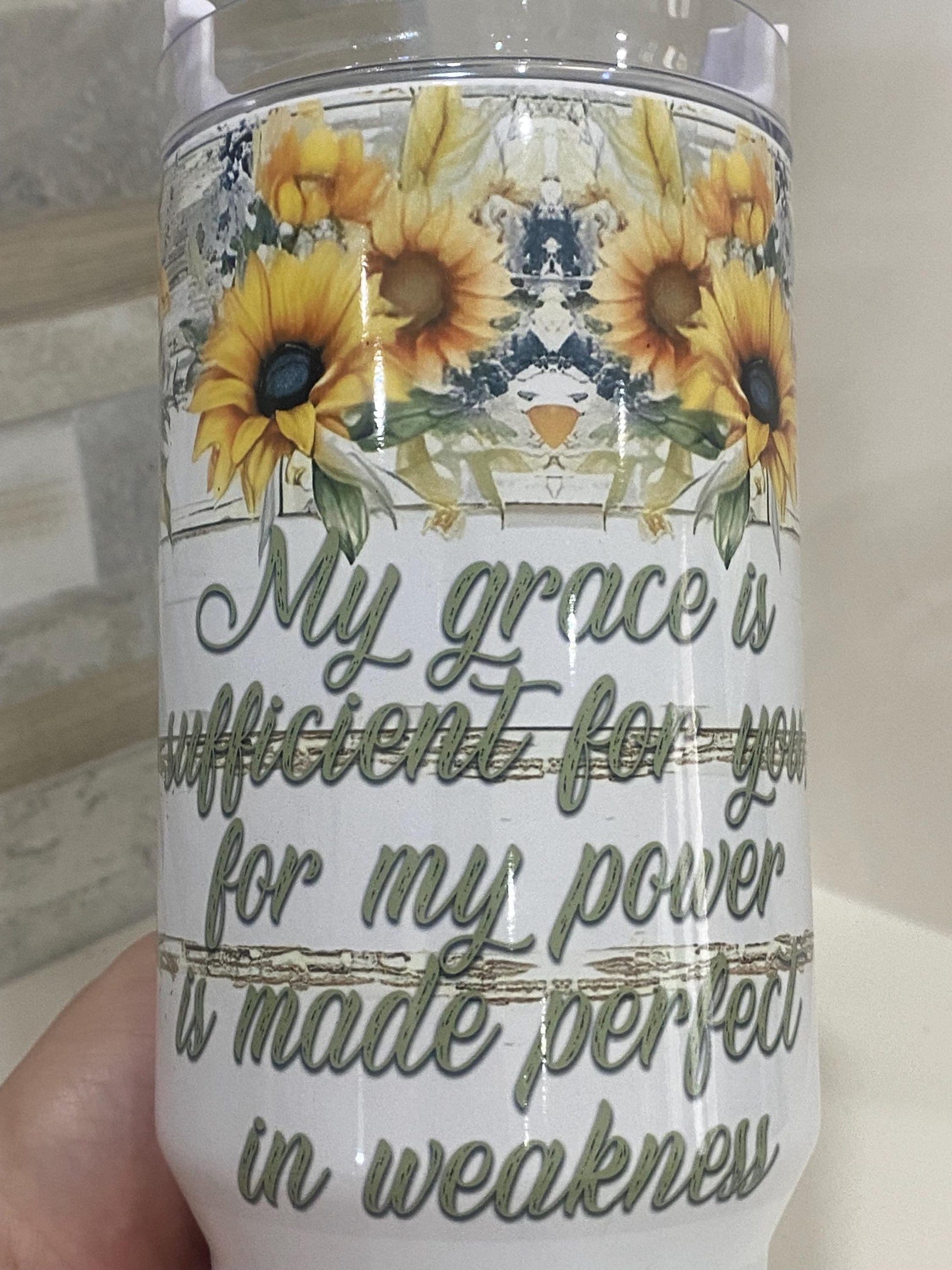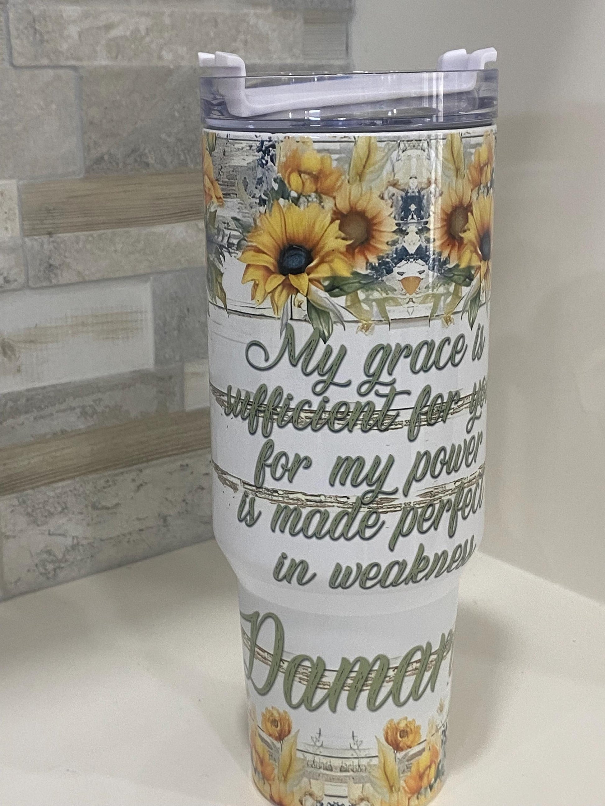 Sunflower Christian tumbler with handle and straw. Personalized tumblers. 40oz tumbler